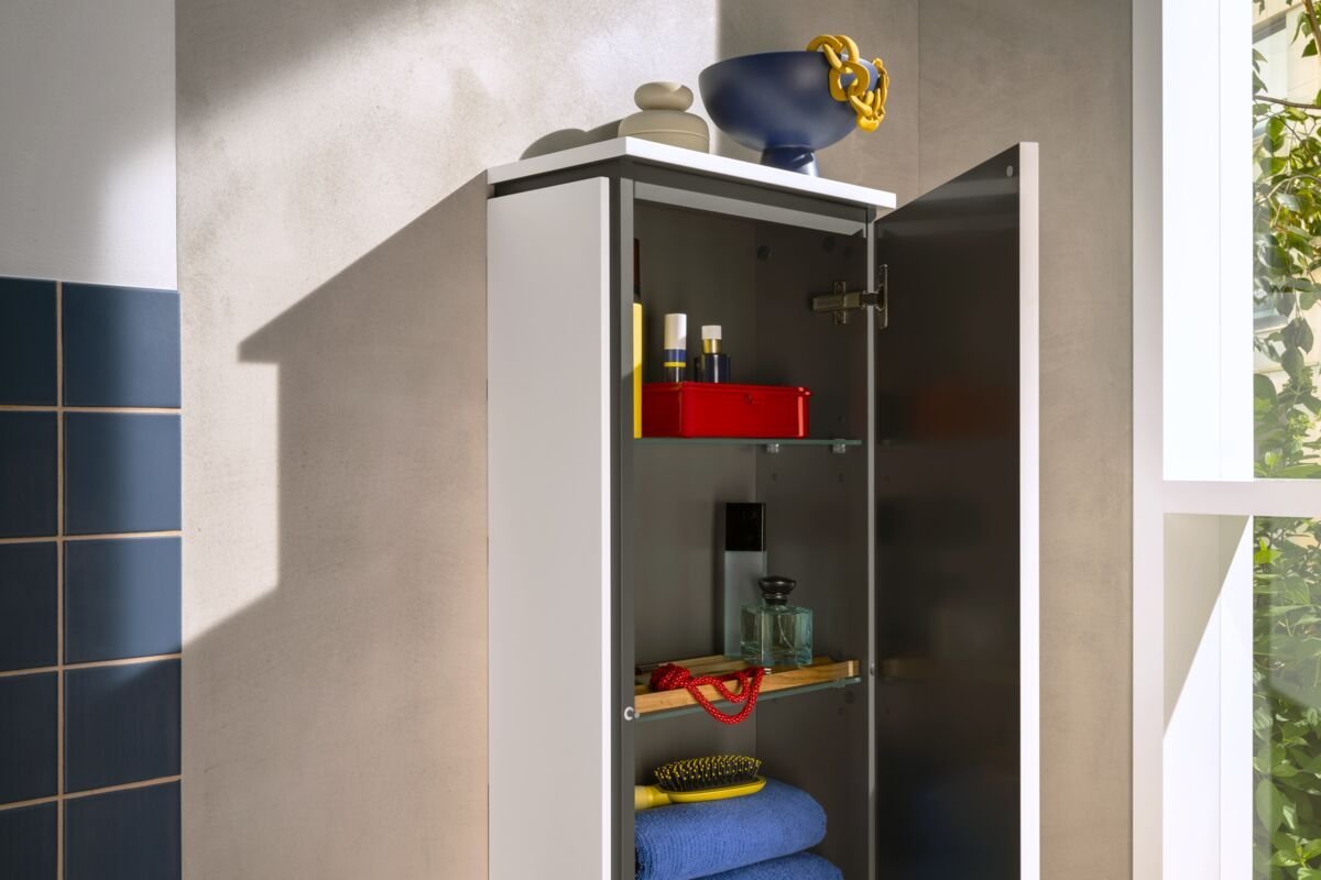 Für eine maßgeschneiderte Schubladenaufteilung bietet hansgrohe die optionalen IntraStoris-Module und -Sets an. Mit dieser Ergänzung wird der Stauraum im Waschtischunterschrank und Hochschrank optimal genutzt. Passende Xilesa Unterschränke und Hochschränke mit reduzierter Tiefe bieten ausreichend Platz für das Nötigste, selbst auf engem Raum. So sorgt hansgrohe Xilesa auch in kompakten Badezimmern für die nötigen Aufbewahrungsmöglichkeiten.