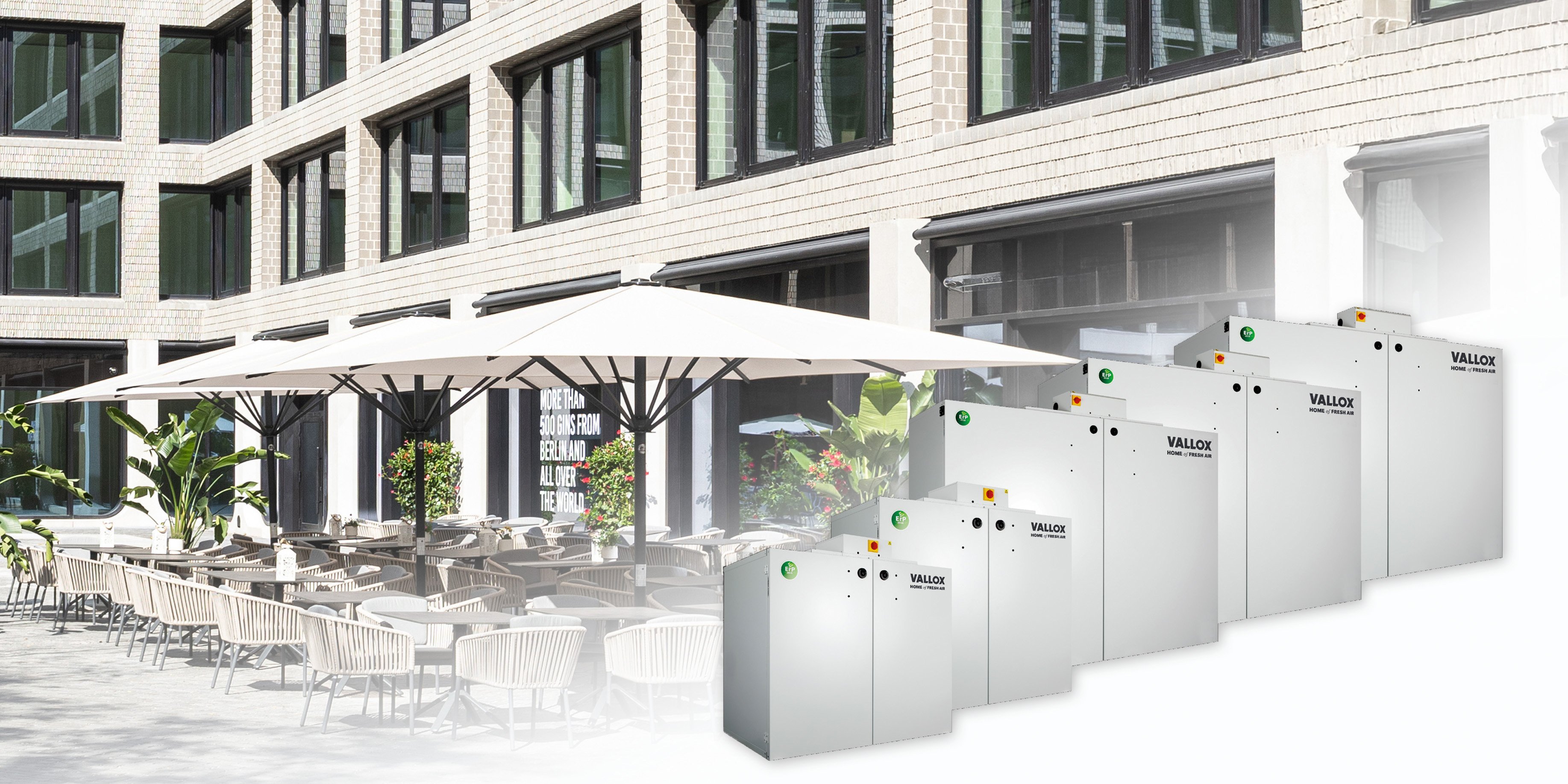 Vallox COMMERCIAL LINE Vario - Outdoor-Lüftungsanlage für hochmodernen Gewerbe-Neubau Die variantenreiche VARIO-Geräteserie bietet viele Vorteile für die energieeffiziente Belüftung von Büros und gewerblichen Gebäuden, aber auch für Wohnanlagen und Hotels.